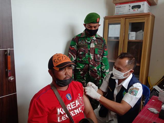 Simalungun  |  Guna melancarkan dan mengamankan selama pelaksanaan pemberian vaksin Covid-19, dengan menghimbau kepada masyarakat untuk selalu menjaga jarak saat menunggu antrian ” Bapak ibu peserta Vaksin harap selalu menjaga jaraknya, masker jangan dilepas, kemudian setelah vaksin juga harus selalu mengutamakan prokes karena bukan berarti setelah Vaksin anda semua kebal virus corona, kegiatan tersebut dilaksanakan Personel Bintara Pembina Desa (Babinsa) Koramil 12/Saribu Dolok jajaran Kodim 0207/Simalungun Kopda Suhendri turun kewilayah binaan untuk melaksanakan kegiatan monitoring pelaksanaan Vaksinasi tahap ke I kepada warga masyarakat wilayah binaan, kegiatan tersebut yang dilaksanakan bertempat di Nagori Kecamatan Silimahuta dan Kel  Saribudolok di   Puskesmas Saribudolok kecamtan Silimakuta Kabupaten Simalungun, Selasa (14/09/2021).