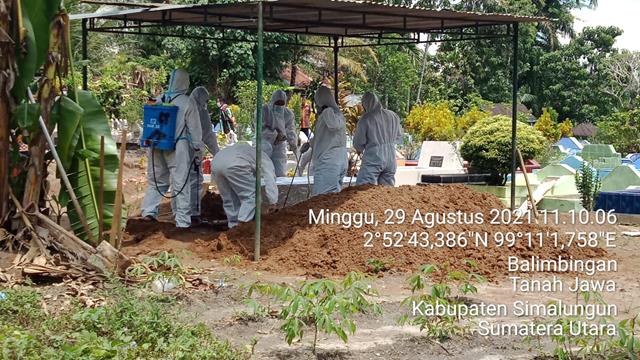 Informasi dari Gugus tugas Covid 19 Simalungun kepada Forkopimca Kec.Tanah Jawa bahwa yang bersangkutan adalah Positif covid 19 sehingga kapuskesmas bersama Forkopimca Tanah Jawa langsung turun ke lapangan dan menginstruksikan agar di kebumikan sesuai prosedur protokol kesehatan terhadap orang yang meninggal Positif Covid 19. Turut hadir dalam kegiatan tsb Pangulu Ibu Dra.Martina Marbun. Babinsa Koramil 10/Blb Serma Bambang Suriyanto. Bhabinkamtibmas Bripka J.Tampubolon. Bidan Desa Ibu Hotmida Sinaga. Tokoh agama Bapak Subari dan Perwakilan Keluarga Bapak Imam.
