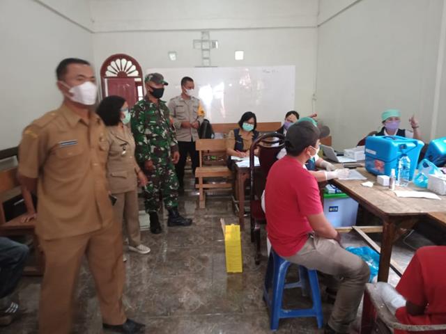 Simalungun | Untuk membantu pemerintah dalam menyukseskan pemberian vaksin, dalam hal ini Personel Bintara Pembina Desa (Babinsa) Koramil 13/Tiga Runggu jajaran Kodim 0207/Simalungun Sertu Poltak P Tondang, Koptu Susandri Pratama bersama dengan Bhabinkamtibmas, Camat dan Lurah Haranggaol turut serta melaksanakan monitoring pelaksanaan Vaksin Covid-19 Dosis Pertama kepada Masyarakat diwilayah binaan, kegiatan tersebut yang dilaksanakan bertempat di Kecamatan Haranggaol Kabupaten SImalungun, Rabu (08/09/2021).