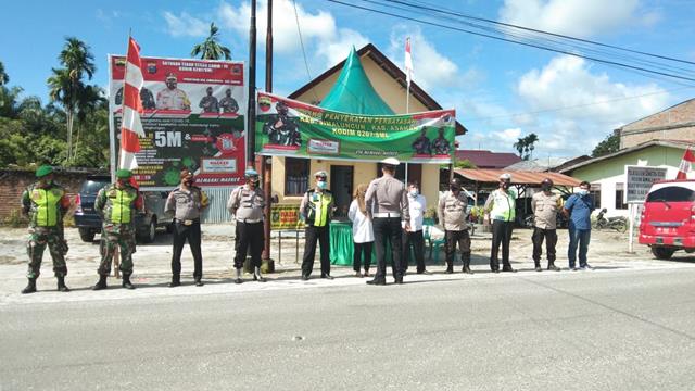 Simalungun | Operasi Gabungan Penyekatan dan Pengalihan Kendaraan, Personel Posko Pengendalian PPKM (Pemberlakuan Pembatasan Kegiatan Masyarakat) Level-lV dilakukan oleh Personel Bintara Pembina Desa (Babinsa) Koramil 10/Balimbingan jajaran Kodim 0207/Simalungun Sertu Edy Silalahi dan Serda Samrin Damanik turut serta melaksanakan Ops Penyekatan dan Pengalihan Kendaraan dengan melaksanakan Himbauan dan Sosialisasi kepada para masyarakat baik itu para penumpang dan pengemudi kendaraan bermotor agar supaya tetap mematuhi anjuran pemerintah tentang Protokol Kesehatan untuk selalu menggunakan masker, mencuci tangan dengan sabun dan menjaga jarak serta menghindari kerumunan guna untuk mencegah penyebaran penularan Covid-19, kegiatan personel Posko Pengendalian PPKM Level-lV Penyekatan dan Pengalihan Kendaraan di perbatasan Simalungun dengan Asahan di Simpang Tangsi Nagori Balimbingan Kecamatan Tanah Jawa Kabupaten Simalungun, Rabu (01/09/ 2021).