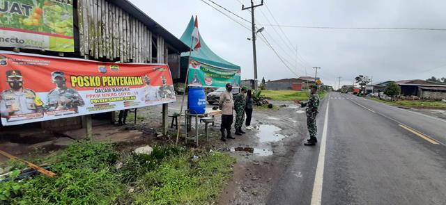 Simalungun | Kegiatan PPKM Level lV dalam rangka pengendalian serta himbauan protokol kesehatan bersama tiga pilar dengan melaksanakan Operasi PPKM Skala Mikro dengan melakukan himbauan kepada warga Masyarakat agar selalu mematuhi protokol kesehatan dengan 5 M. pada kesempatan kali ini dalam pelaksanaan kegiatan PPKM dan himbauan ini dilakukan Personel Bintara Pembina Desa (Babinsa) Koramil 12/Saribu Dolok jajaran Kodim 0207/Simalungun Serma Gunawan dan Kopda Suhendri, pada kegiatan PPKM Skala Micro yang sudah memasuki Level lll diwilayah Kbaupaten Simalungun dan himbauan protokol kesehatan Covid-19 diwilayah binaan ini rutin dilaksanakan secara berkesinambungan dalam rangka membantu Pemerintah Kabupaten Simalungun untuk penanganan Covid-19, pada pelaskanaan kegiatan Pos Pengendalian PPKM Level lll tersebut yang dilaksanakan bertempat di Perbatasan Kabupaten Karo – Kabupaten Simalungun tepatnya di Nagori Silimakuta Barat Kecamatan Saribu Dolok Kabupaten Simalungun, Senin (30/08/2021).