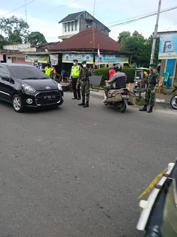 Pamatang Siantar | Dalam kegiatan PPKM diwilayah binaan dilakukan oleh Personel jajaran Kodim 0207/Simalungun, dalam hal ini Personil Bintara Pembina Desa (Babinsa) Koramil 15/Sipintu Angin jajaran Kodim 0207/Simalungun Sertu P. Sinaga dan Serda Pahala Lubis turun kewilayah binaan untuk turut serta melaksanakan kegiatan penjagaan di Posko Pengedalian PPKM Level 4 wilayah Kota Pematang Siantar, kegiatan Pos Pengendalian arus Jalan dalam PPKM pengendalian arus Jalan Malanton Siregar Kota Pematang Siantat menuju pusat kota dengan tujuan kepada masyarakat agar tetap memakai masker dan mencuci tangan untuk mencegah penyebaran Virus Covid-19 di wilayah Kota Pematang Siantar, Rabu (01/09/2021).