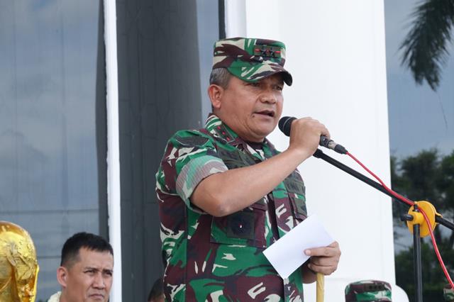 Asahan | Pangdam l/Bukit Barisan Mayjen TNI Achmad Daniel Chardin, SE, MSi, yang didampingi oleh Danrem 022/Pantai Timur Kolonel Inf Luqman Arief, S.I.P., bersama para Dandim jajaran Korem 022/PT serta unsur Forkopimda, sambut kedatangan Tim Liga Santri Piala Kasad 2022 yang dilaksanakan bertempat di Kantor Bupati Kabupaten Asahan Jl. Lintas Sumatra Kota Kisaran Barat Kabupaten Asahan, Jumat (28/10/2022).