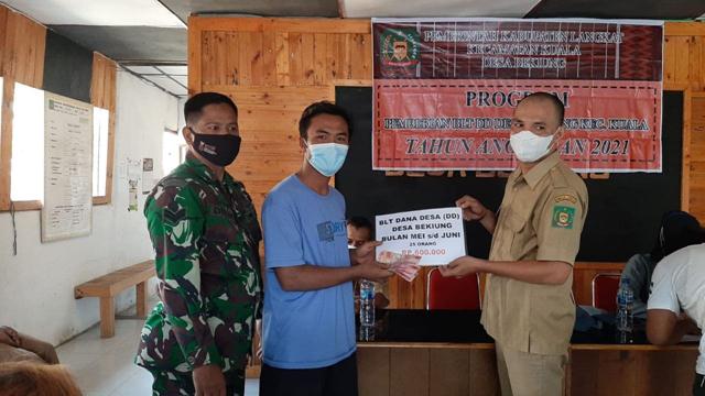 Kuala – Pantau pelaksanaan pembagian BLT DD, Babinsa Koramil 04/Kuala Kodim 0203/Langkat Sertu Didik melaksanakan pendampingan pembagian BLT kepada 25 warga binaan kepada masyarakat yang terdampak pandemi covid 19 bertempat di desa Bekiung Kecamatan Kuala Kab. Langkat, Jumat ( 10/09/2021).