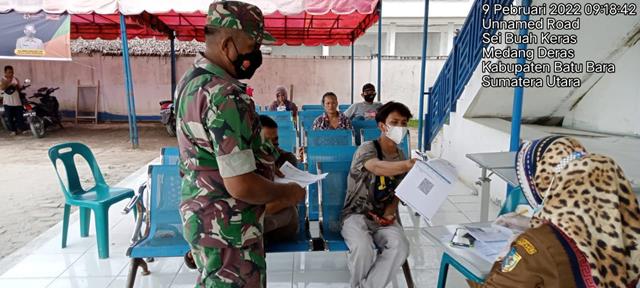Batu Bara | Kegiatan ini merupakan wujud sinergitas antara TNI-Polri dan instansi terkait dalam rangka mengatasi pandemi virus COVID-19 secara bersama sama dalam rangka menekan angka Penyebaran virus COVID-19, dalam hal ini seperti yang dilakukan oleh Personel BIntara Pembina Desa (Babinsa) Koramil 01/Medang Deras jajaran Kodim 0208/Asahan Serda Muliana turun kewilayah binaan untuk melaksanakan kegiatan pendataan warga dalam rangka melaksanakan vaksinasi di Desa Sei Buah Keras dalam rangka pendataan warga desa binaan yang belum dan yang sesudah melakanakan Vaksinasi diwilayah tempat tersebut bersama dengan Bapak Santo, Bapak Parlan dan Ibu Heni, kegiatan tersebut yang dilaksanakan bertempat di Desa Sei Buah Keras Kecamatan Medang Deras Kabupaten Batu Bara, Rabu (09/02/2022).