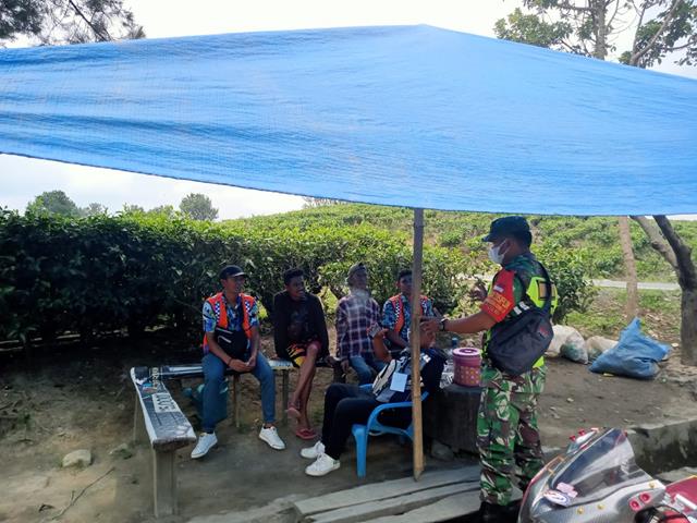 Pada kesempatan tersebut Babinsa Serka Ruslan Simamora mengatakan sebagai Babinsa Koramil tidak bosan terus memberikan arahan dan imbauan kepada warga yang datang ke Objek wisata Kebun Teh Sidamanik agar mematuhi aturan yang telah dikeluarkan oleh pemerintah tentang protokol kesehatan dengan memakai masker bila keluar rumah atau ketempat keramaian. Kegiatan ini kami lakukan di tempat-tempat keramaian seperti tempat wisata kebun teh, pendisiplinan masyarakat yang dilakukan Babinsa dalam rangka mengimbau dan mengajak masyarakat untuk patuh terhadap protokol kesehatan terkait Covid-19, ini sebagai upaya untuk mencegah sekaligus memutus mata rantai penyebaran Covid-19 yang sampai saat ini belum menunjukan keadaan yang menurun, bahkan kasus positif masih saja banyak, terang Babinsa Serka Ruslan Simamora.
