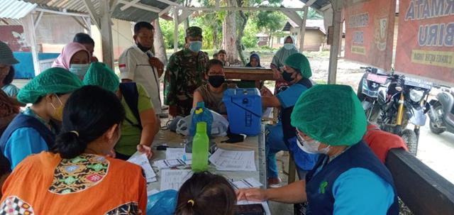 Simalungun | Dalam rangka mensukseskan Program Pemerintah dalam percepatan Vaksinasi terhadap warga Masyarakat, dalam hal ini seperti yang dilakukan oleh Personel Bintara Pembina Desa (Babinsa) Koramil 10/Tanah Jawa jajaran Kodim 0207/Simalungun Serda Parulian Sinaga turun kewilayah binaan untuk melaksanakan kegiatan pendampingan Vaksin Dosis Pertama (l) dan Dosis ke dua (ll) dan Dosis ke Tiga dari Dinas Kesehatan Kabupaten Simalungun untuk Puskesmas Hatonduhan dalam rangka kegiatan penyuntikan Vaksinasi terhadap Masyarakat, kegiatan tersebut yang dilaksanakan bertempat di Huta ll Apdeling ll Tonduhan di Nagori Tonduhan Kecamatan Hatonduhan Kabupaten Simalungun, Rabu (06/04/2022).