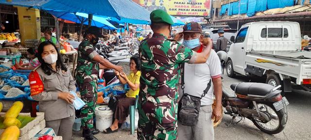 Pantau Proses Transaksi Jual Beli di Pasar Horas Agar Sesuai Protokol Kesehatan Dilakukan Personel Jajaran Kodim 0207/Simalungun