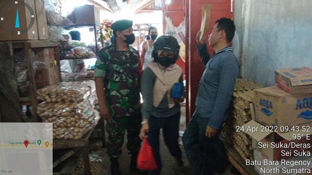 Pada kesempatan tersebut Babinsa Sertu Sumedi mengatakan semua pasar tradisional di wilayah Kabupaten Batu Bara khususnya Pasar Delima Indrapura diawasi secara maksimal, tentu saja dengan pendekatam secara persuasif dan humanis. Terlihat di lokasi para Babinsa sedang melaksanakan Komonikasi Sosial (Komsos) dengan para pedagang maupun pembili untuk memberikan edukasi dan mensosialisasikan pentingnya mematuhi protokol kesehatan Covid-19, terangnya.