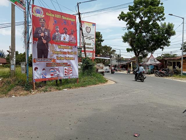 Dalam hal ini seperti yang dilakukan oleh Personel Bintara Pembina Desa (Babinsa) Koramil 10/Tanah Jawa jajaran Kodim 0207/Simalungun Serka Sugiarto turun kewilayah binaan untuk melaksanakan kegiatan melaksanakan Pemasangan Baliho himbauan Dandim 0207/Simalungun tetang Protokol Kesehatan guna mencegah penyebaran Virus Corona varian Omicron, kegiatan terebut yang dilaksanakan bertempat di Jalan Rakuta Sembiring Simpang Pesantren Kelurahan Pondok Sayur Kecamatan Siantar Martoba Kota Pematang SIantar, Sabtu (19/02/2022).