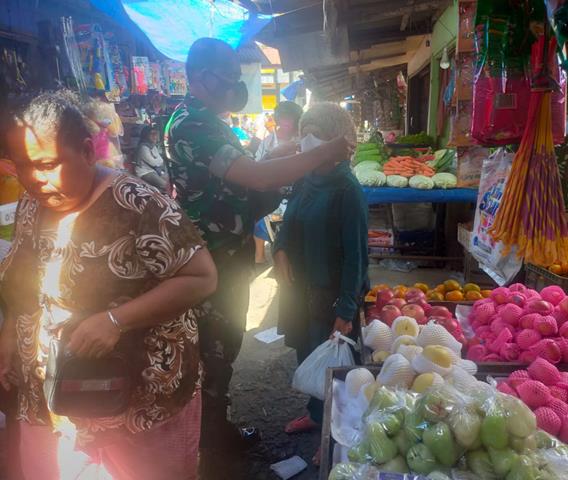 Pasar Tradisional, Personel Jajaran Kodim 0207/Simalungun Laksanakan Penegakan Disiplin Protokol Kesehatan