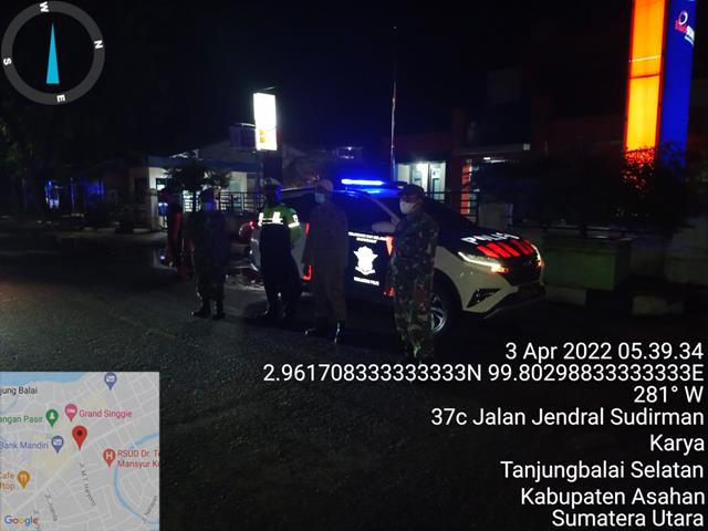 Giat patroli asmara subuh di laksanakan bersama dengan tim gabungan dari Babinsa Koramil 10/Sei Kepayang, Babinsa Koramil 09/Tanjung Balai, Babinsa Koramil 08/Pulau Buaya, Babinsa Koramil 11/Simpang Empat, Babinsa Koramil 17/Datuk Bandar, Personil Polres Tanjung Balai dan Satpol PP Tanjung Balai.
