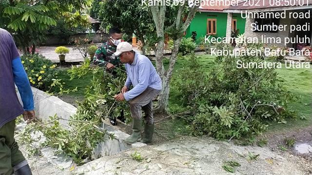 Batu Bara  |  Guna mengantisipasi banjir pada musim hujan seperti sekarang ini, Gotong royong membersihkan parit ini juga mendapat apresiasi yang baik dari masyarakat, dalam hal ini Personel Bintara Pembina Desa (Babinsa) Koramil 03/Lima Puluh jajaran Kodim 0208/Asahan Serda Edi Rianto beserta Masyarakat turut serta melaksanakan kegiatan Gotong Royong membersihkan pangkal jalan dan parit bersama dengan Kepala Desa Sumber Pari Bapak Irwanto, Kepala Dusun lll Bapak Sutrisno dan Dinas Lingkungan Hidup serta Masyarakat setempat diwilayah binaan, kegiatan tersebut yang dilaksanakan bertempat di Jalan Sumber Padi Dusun III Desa Sumber Padi Kecamatan Lima Puluh Kabupaten Batu Bara, Kamis (09/09/2021).
