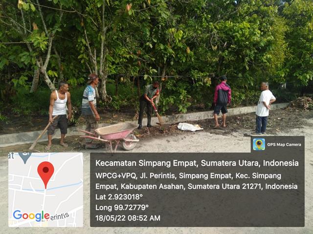 Asahan | Babinsa bersama warga dapat membersihkan badan jalan serta membersihkan saluran parit hingga tidak terjadi banjir, kegiatan ini dilaksanakan guna menciptakan gotong-royong dan kepedulian masyarakat terhadap kebersihan lingkungan sekitarnya. Kondisi ruas kanan-kiri jalan yang ditumbuhi dengan rumput liar dan banyaknya sampah membuat pemandangan sekitar jalan menjadi kelihatan kurang terpelihara kebersihannya. Dalam hal ini seperti yang dilakukan oleh Personel Bintara Pembina Desa (Babinsa) Koramil 11/Simpang Empat jajaran Kodim 0208/Asahan Serda S. Siregar turun kewilayah binaan untukmelaksanakan kegiatan gotong royong bersama warga. Babinsa turut serta mengajak warga membersihkan Badan kanan kiri jalan serta menimbun jalan yang berlobang supaya aktivitas warga masyarakat tidak terhambat dan memperlancar saluran parit guna mengantisi pasi banjir bila musin hujan bersama dengan Bapak Opung Sirait, Bapak Legiman, Bapak Mustopa dan Bapak Rahel, kegiatan tersebut yang dilaksanakan bertempat di Desa Simpang Empat Kecamatan Simpang Empat Kabupaten Asahan, Rabu (18/05/2022).