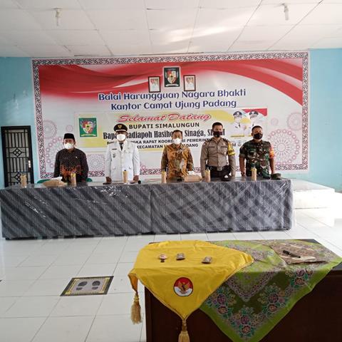 Simalungun  |  Acara pelantikan dan pengambilan sumpah saat ini di tengah-tengah pandemi Covid-19, maka pelantikan ini dilaksanakan Secara protokol  kesehatan  diantaranya peserta hadir di arahkan untuk cuci tangan terlebih dahulu atau di semprot dengan sanitizer, cek suhu badan, pakai masker dan pysical stancing atau jaga jarak tempat duduknya. Seperti halnya yang dilakukan oleh Personel Bintara Pembina Desa (Babinsa) Koramil 07/Pasar Baru jajaran Kodim 0207/Simalungun Serma Temu menghadiri acara Pelantikan Pangulu Antar Waktu (PAW) Bapak Selamet Riadi, kegiatan tersebut yang dilaksanakan bertempat di Balai Harungguan Nagara Bhakti Kantor Camat Ujung Padang Kabupaten Simalungun, Jumat (14/01/2022).