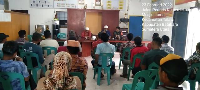 Batu Bara  |  Dalam rangka untuk menciptakan kerja sama dan menjaga hubungan silaturahmi yang baik antara Babinsa dengan Masyarakat desa serta untuk meningkatkan kepedulian masyarakat desa guna mendukung tugas Pokok Babinsa, dalam hal ini Personel Bintara Pembina Desa (Babinsa) Koramil 04/Talawi jajaran Kodim 0208/Asahan Serda Dhani turun kewilayah binaan untuk melaksanakan kegiatan Komunikasi Sosial (Komsos) bersama dengan warga masyarakat dalam rangka untuk menjalin hubungan yang lebih akur dan harmonis dalam melaksanakan tugas di kewilayah serta Musyawarah dengan warga tentang kenakalan remaja, kegiatan tersebut yang dilaksanakan bertempat di Kantor Desa Mesjid Lama Kecamatan Talawi Kabupaten Batu Bara, Rabu (23/02/2022).