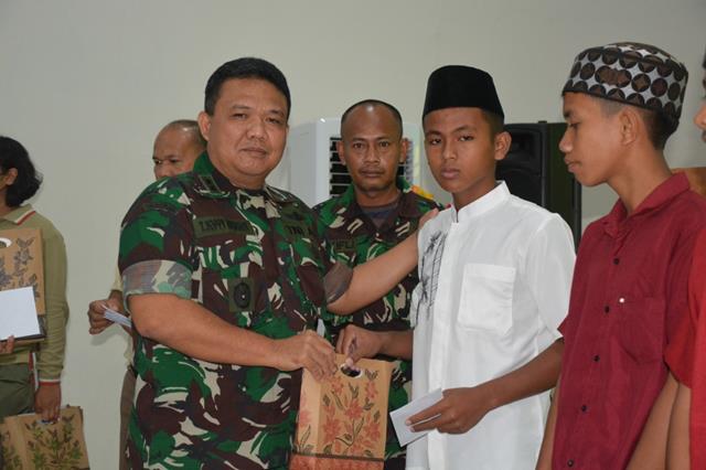 Dalam sambutan Komandan Korem 022/Pantai Timur Kolonel Inf Luqman Arief, S.I.P., yang dibacakan oleh Kepala Staf Korem 022/Pantai Timur Letkol Inf T Yoppy Hutasoit mengucapkan terima kasih dan selamat datang saya sampaikan kepada para undangan dan pembimbing anak-anak yatim serta anak-anak sekalian, atas kesediannya meluangkan waktu untuk menghadiri acara ini. Kegiatan pemberian santunan ini merupakan wujud kepedulian sosial dan sebagai ikatan tali kasih yang tulus untuk turut membantu meringankan kebutuhan anak-anak yatim maupun anak-anak yang mengalami disabilitas, terangnya.