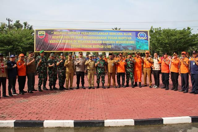 Labuhan Batu Utara | Komando Resort Militer (Korem) 022/Pantai Timur menggelar latihan penanggulangan bencana alam dengan melibatkan instansi terkait, dengan mengusung Tema ” Melalui Latihan Penanggulangan Bencana Alam, Korem 022/Pantai Timur Siap Melaksanakan Tugas Bantuan Kepada Pemda di Wilayah Dalam Rangka Mendukung Tugas Pokok Kodam l/Bukit Barisan “, kegiatan tersebut yang dilaksanakan bertempat di Lapangan Kantor Bupati Labuhan Batu Utara Aek Kanopan Kecamatan Kualuh Hulu Kabupaten Labuhan Batu Utara, Selasa (22/11/2022).