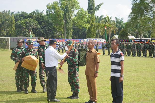 Sementara itu, Kasiter Rem 022/PT Mayor Inf Fahroel Muhadi, yang hadir mewakili Danrem 022/PT Kolonel Inf Luqman Arief, S.I.P., menegaskan, TMMD yang dilakukan sebagai upaya untuk mengakselerasikan pembangunan, memeratakan kesejahteraan, meningkatkan Kemanunggalan TNI-Rakyat sekaligus meningkatkan kecintaan kepada NKRI. “TMMD ini merupakan upaya untuk membantu pemerintah guna mempercepat pembangunan di wilayah pedesaan dan sulit dijangkau,” katanya saat ditemui usai upacara.