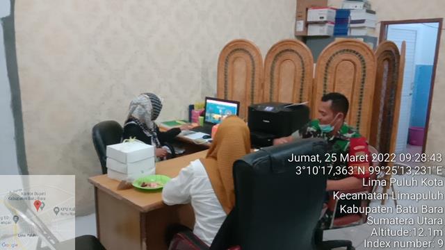 Batu Bara | Kita ketahuai bersama bahwa percepatan Vaksinasi di Kabupaten Batu Bara belum mencapai target 100 persen, oleh karena itu kami bersama tim covid 19 akan mendukung penuh untuk melaksanakan kegiatan Vaksinasi di desa-desa agar mencapai sasaran yang diharapkan, dalam hal ini seperti yang dilakukan oleh Personel Bintara Pembina Desa (Babinsa) Koramil 03/Lima Puluh jajaran Kodim 0208/Asahan Serma Suhardi turun kewilayahbinaan untuk melaksanakan kegiatan Komunikasi Sosial (Komsos) bersama dengan perangkat desa diwilayah binaan dalam rangkapendataan pencapaian Vaksinasi diwilayah desa binaan tersebut, kegiatan tersebut yang dilaksanakan bertempat di Kantor Desa Lima Puluh Kecamatan Lima Puluh Kabupaten Batu Bara, Jumat (25/03/2022).