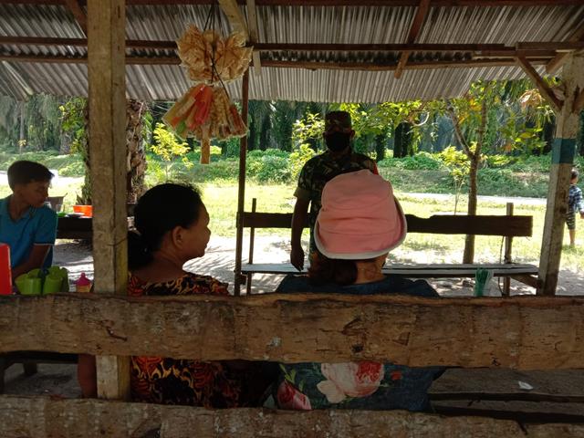 Simalungun  |  Guna untuk memutus mata rantai penyebaran Virus Covid 19 di wilayah Binaan serta agar terciptanya silahturahmi yang baik antara TNI dengan masyarakat serta guna memutuskan mata rantai penyebaran Virus Covid-19 sebagai bentuk upaya membantu Pemerintah dalam menegakkan disiplin bagi masyarakat sekitarnya, seperti halnya yang dilakukan oleh Personel Bintara Pembina Desa (Babinsa) Koramil 20/Raya Kahaen jajaran Kodim 0207/Simalungun Serda Endang M Wahyudi tururn kewilayah binaan untuk melaksanakan Penegakan Disiplin Protokol Kesehatan Covid-19, dengan pemberian masker dan stiker kepada masyarakat, memberikan pemahaman New Normal yaitu menggunakan masker setiap keluar rumah, cuci tangan pakai sabun, menjaga jarak, menghindari kerumunan dan mengurangi mobilitas, dengan turun kewilayah binaan untuk melaksanakan kegiatan Penegakkan Disiplin Protokol Kesehatan dengan memberikan himbauan untuk mematuhi protokol kesehatan dalam pencegahan penyebaran Corona Virus Desease 2019 (Covid-19), kegiatan tersebut yang dilaksanakan bertempat di Kelurahan Sindar Raya Kecamatan Raya Kahean Kabupaten Simalungun, Selasa (01/02/2022).