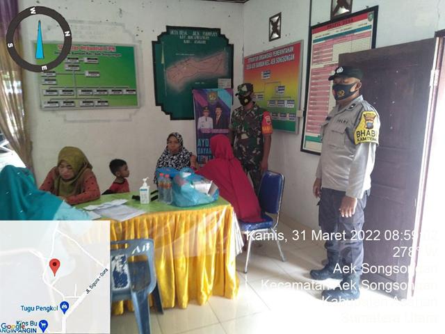 Dengan dilaksanakan nya serbuan vaksinas diwilayah Desa Aek Songsongan Kecamatan Aek Songsongan, Babinsa Serda Tumirin Purnomo dengan mendampingi proses pelaksanaan Vaksinasi untuk masyarakat di Aula Kantor Desa Aek Songsongan, pada kesempatan tersebut Babinsa dengan melakukan pengawasan dan monitoring para peserta vaksin untuk mengikuti seluruh aturan dan tahapan dalam rangka mencegah terjadinya kerumunan, kegiatan tersebut turut serta dihadiri oleh Bapak Ir EdY Sahputra Mrp Kepala Desa Aek Songsongan, Bapak Pordiman Pegawai Kecamatan, Aiptu Wagimin Kanit Binmas Polsek Bandar Pulau, Ibu Dr Rosalianse Kapus Aek Songsongan beserta Tim Vaksinator Aek Songsongan dan Para Kadus Desa Aek Bamban.