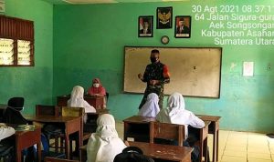 Asahan  |  Demi untuk kelancaran pelaksanaan kegiatan serbuan vaksinasi yang diberikan kepada Masyarakat diwilayah binaan, dalam kesempatan ini seperti halnya yang dilakukan oleh Personel Bintara Pembina Desa (Babinsa) Koramil 15/Bandar Pulau jajaran Kodim 0208/Asahan Serda Tumirin Purnomo turun kewilayah binaan untuk melaksanakan kegiatan Vaksinasi kepada masyarakat diwilayah binaan bersama dalam rangka pelaksanaan Vaksinasi dan monitoring suntik vaksinasi, kegiatan tersebut yang dilaksanakan bertempat di Aula Kantor Desa Aek Songsongan Kecamatan Aek Songsongan Kabupaten Asahan, Kamis (31/03/2022).