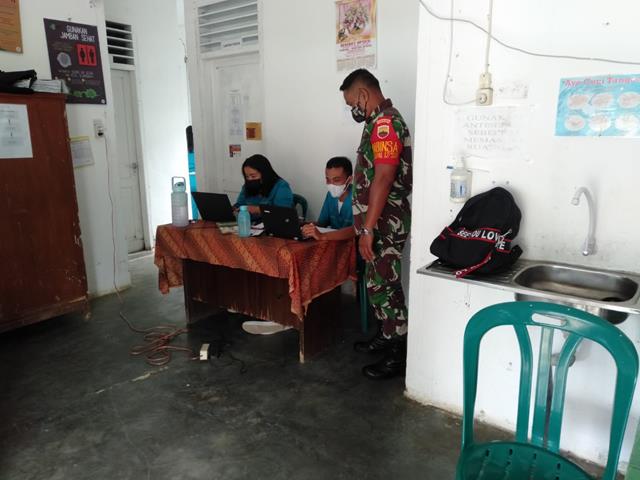 Simalungun | Kegiatan Vaksinasi Covid-19 massal terus dilakukan pengamanan secara bertahap dilakukan para Babinsa diwilayah binaan, dalam hal ini seperti yang dilakukan oleh Personel Bintara Pembina Desa (Babinsa) Koramil 17/Sidamanik jajaran Kodim 0207/Simalungun Serda Dirman R Simangunsong turun kewilayah binaan untuk melaksanakan kegiatan monitoring kegiatan pelayanan Vaksinasi Covid-19 oleh Team Vaksinator Pkm Pematang Sidamanik, kegiatan tersebut yang dilaksanakan bertempat di Puskesmas Pematang Sidamanik Kecamatan Pamatang Sidamanik Kabupaten Simalungun, Selasa (07/06/2022).