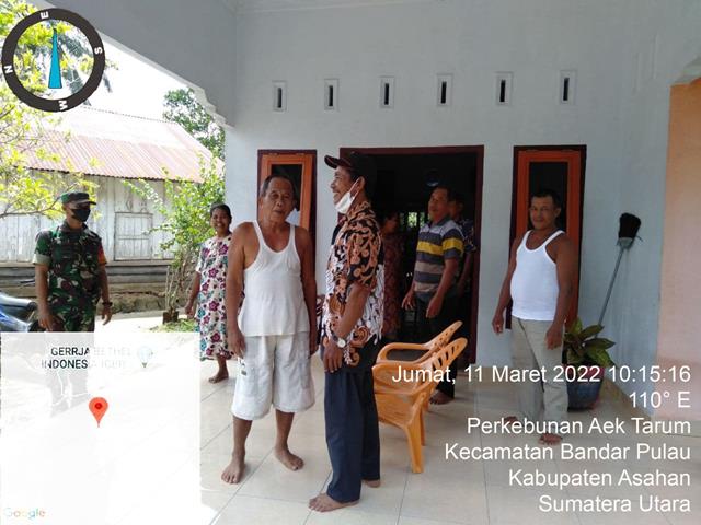 Asahan | Dalam rangka mempercepat proses pelaskanan Vaksinasi Babinsa bersama petugas mendatangi warga dari rumah ke rumah, sangat membantu karena warga tidak perlu pergi ke tempat vaksin cukup menunggu di rumah masing-masing, dalam hal ini seprti yang dilakukan oleh Personel Bintara Pembina Desa (Babinsa) Koramil 15/Bandar Pulau jajaran Kodim 0208/Asahan Serda Erianto turun kewilayah binaan untuk melaksanakan kegiatan pendampingan kegiatan Vaksin tepatnya, kegiatan ini juga turut serta dihadiri oleh Ibu Andelina (Kapus Bandar pulau), Tim Vaksinator Puskesmas Kecamatan Bandar Pulo, Aiptu Boby (Babinkamtibmas) dan Bapak Amran (Kepala Dusun II), kegiatan tersebut yang dilaksanakan bertempat di Desa Perkebunan Aek Tarum Kecamatan Bandar Pulau Kabupaten Asahan, Jumat (11/03/2022).