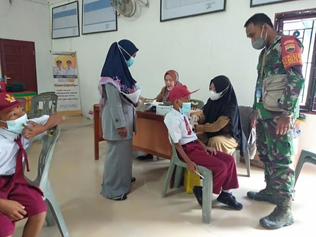 Dalam hal ini pendampingan pelaksanaan Suntik Vaksin kepada warga masyarakat desa wilayah binaan tersebut, guna mengantisipasi gangguan keamanan selama pelaksanaan pemberian vaksin Covid-19 tersebut Babinsa melakukan pendampingan dalam kegiatan tersebut. Babinsa Serma Junson Manik menyampaikan bahwa Pelaksanaan Kegiatan vaksinasi lansia oleh tim Puskesmas menggunakan protokol kesehatan ketat yaitu Wajib memakai Masker, pengecekan suhu/kesehatan, Mencuci tangan dan menjaga jarak aman.