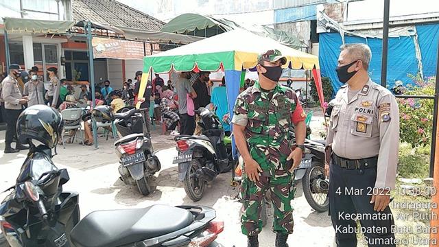 Batu Bara | Babinsa mengawal semua proses penyaluran bantuan mulai dari pendataan, pendampingan dan pengawasan penyaluran bantuan, secara bersama-sama dengan perangkat Desa lainnya, seperti halnya yang dilakukan oleh Personel BIntara Pembina Desa (Babinsa) Koramil 02/Air Putih jajaran Kodim 0208/Asahan Serda A. Silaban beserta 1 orang Babinsa turun kewilayah binaan untuk melaksanakan kegiatan pendampingan pembagian BST dan Vaksinasi, kegiatan ini turut serta dihadiri oleh Kapus Ibu Dr. Jurni, Babinkamtibmas Brigader M. Hasibuan, Din Sos Ibu Dewi Sri, Aparatur Camat dan Aparatur Desa, kegiatan tersebut yang dilaksanakan bertempat di Kantor Pos Kelurahan Indrapura Kecamatan Air Putih Kabupaten Batu Bara, Jumat (04/03/2022).