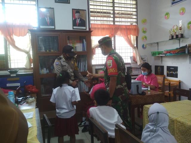 Simalungun  |  Anak itu harus dipersiapkan oleh ibunya. Nanti ibunya yang yang mengantar. Itu tidak boleh suster ataupun pembantu yang tidak tahu tentang anak itu. Harus orangtuanya yang tahu tentang anak itu atau kakaknya yang lebih besar dan jangan ada yang disembunyikan, seperti halnya yang dilakukan oleh Personel Bintara Pembina Desa (Babinsa) Koramil 19/SK jajaran Kodim 0207/Simalungun Serda Komarudin turun kewilayah binaan untuk turut serta mendampingi melaksanakan pendampingan Vaksin Dosis Pertama (l) dari Dinas Kesehatan Kabupaten Simalungun untuk Puskesmas Silau Kahean penyuntikan Vaksin Covid-19 di SD Negeri 096743 Silandoyung, SD Negeri 091384 Jalan Bayu, SD Negeri 095237 Pondok Hombing, SD Negeri 091727 Bandar Maruhur dan SD Negeri 095235 Damakitang, Rabu (12/01/2022).