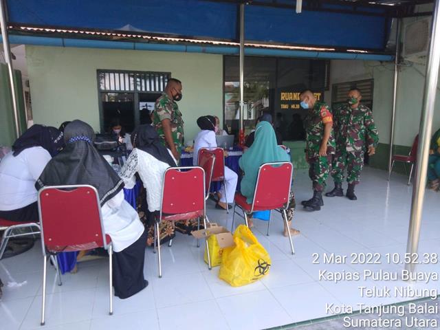 Tanjung Balai | Kegiatan pendampingan bertujuan untuk memberikan rasa nyaman dan aman kepada masyarakat yang akan mendapatkan suntikan vaksinasi. Para Babinsa dan Bhabinkamtibmas dalam melakukan pendampingan tersebut juga memberikan pemahanaman kepada masyarakat bahwa vaksinasi tersebut tentunya aman untuk digunakan, dalam hal ini seperti yang dilakukan oleh Personel Bintara Pembina Desa Koramil 08/Pulau Buaya jajaran Kodim 0208/Asahan Pelda F. Sinaga, Sertu Agustiar dan Pratu Rudi turun kewilayah binaan untuk melaksanakan kegiatan pendampingan Vaksinasi 1, 2 dan Booster untuk masyarakat umum terutama Lansia agar pencapaian Vaksin dapat berjalan dengan baik, kegiatan tersebut yang dilaksanakan bertempat di Kantor Koramil 08/Pulau Buaya Jalan Kapias Pulau Buaya Kecamatan Teluk Nibung Kota Tanjung Balai, Rabu (02/03/2022).