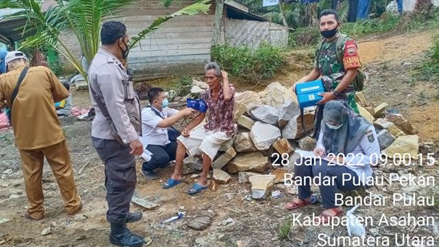 Asahan | Kami Babinsa sebagai aparat teritorial melakukan langkah-langkah proaktif dalam rangka mensukseskan penanganan Covid-19, khususnya di wilayah Kodim 0208/Asahan melalui serbuan vaksinasi masal diwilayah binaan, dalam hal ini seperti halnya yang dilakukan oleh Personel Bintara Pembina Desa (Babinsa) Koramil 15/Bandar Pulau jajaran Kodim 0208/Asahan Sertu Fiha Tasykurun turun kewilayah binaan untuk turut serta melaksanakan kegiatan pendampingan dan Pengawasan pada pelaksanaan Vaksinasi Covid-19 kepada warga desa binaan yang jauh dari pemukiman desa bersama dengan Ibu Betti (Bidan Desa), Aipda Syafrizal Amri (Bhabinkamtibmas) dan Bapak Imran (Kadus lll), kegiatan tersebut yang dilaksanakan bertempat di Dusun III Desa Bandar Pulau Pekan Kecamatan Bandar Pulau Kabupaten Asahan, Jumat (28/01/2022).
