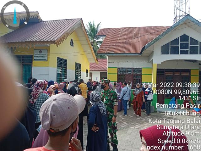 Tanjung Balai  |  Kegiatan pemantauan Babinsa dalam pembagian  Bantuan Pangan Non Tunai (BPNT), dan ketiga Program Keluarga Harapan (PKH) untuk menciptakan Kamtibmas dan mendukung penerapan kebijakan pemerintah untuk menghindari kerumunan yang akan menjadi penularan baru penyebaran virus Covid-19, dalam hal ini seperti yang dilakukan oleh Personel Bintara Pembina Desa (Babinsa) Koramil 08/Pulau Buaya jajaran Kodim 0208/Asahan Serma Subandi dan Serma Irwansyah turun kewilayah binaan untuk melaksanakan kegiatan Komunikasi Sosial (Komsos) dalam rangka pendampingan kepada warga yang menerima Bantuan Pangan Non Tunai (BPNT), dan Program Keluarga Harapan (PKH) se-Kecamatan Teluk Nibung bersama Pegawai dan staf Kantor Camat dan para Kepling dan kepada warga yang mau mengambil BNPT dan PKH harus Vaksin yang sudah waktunya vaksin baik vaksin 2 dan 3 (Boster) serta warga yang melaksanakan antri untuk menunggu giliran di panggil, serta tetap menerapkan protokol kesehatan, kegiatan tersebut yang dilaksanakan bertempat di Kantor Camat Teluk Nibung Kota Tanjung Balai, Jumat (04/03/2022).