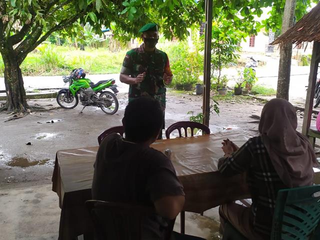 Simalungun | Guna untuk memutus mata rantai penyebaran Virus Covid-19, salah satu titik yang termasuk ramai dipenuhi oleh masyarakat, baik itu untuk berbelanja maupun tempat bekerja, dalam hal ini seperti yang dilakukan oleh Personel Bintara Pembina Desa (Babinsa) Koramil 19/SK jajaran Kodim 0207/Simalungun Serda Komarudin turun langsung kewilayah binaan untuk melaksanakan kegiatan Penegakan disiplin Protokol Kesehatan, memberikan himbauan kepada Masyarakat agar selalu mematuhi protokol kesehatan apabila bepergian keluar rumah agar selalu menggunakan masker, menjaga jarak dan mencuci tangan ,menjauhi kerumunan dan mengurangi mobilitas guna mencegah penyebaran penularan Virus Covid-19, kegiatan tersebut yang dilaksanakan bertempat di Nagori Damakitang Kecamatan Silau Kahean Kabupaten Simalungun, Sabtu (12/02/2022).