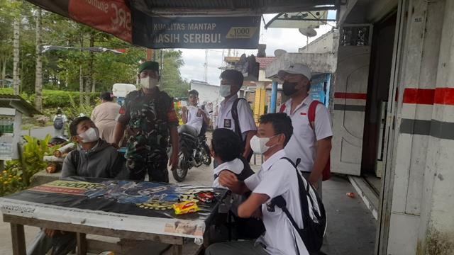 Simalungun | Dalam rangka untuk memutus mata rantai penyebaran covid-19 diwilayah binaan salah satunya ditempat keramaian, dalam hal ini dengan adanya himbauan dari Babinsa, seperti yang dilaukan oleh Personel Bintara Pembina Desa (Babinsa) Koramil 17/Sidamanik jajaran Kodim 0207/Simalungun Koptu Jhon F Sitio turun kewilayah binaan untuk melaksanakan Penegakan Disiplin Protokol Kesehatan Covid-19 di wilayah desa binaan dengan menghimbau kepada masyarakat agar selalu mencuci tangan dgn sabun, menggunakan masker dan menjaga jarak serta menghindari kerumunan guna mencegah penularan Covid-19, kegiatan tersebut yang dilaksanakan bertempat di Nagori Saitbuttu Kecamatan Pematang Sidamanik Kabupaten Simalungun, Rabu (09/03/2022).