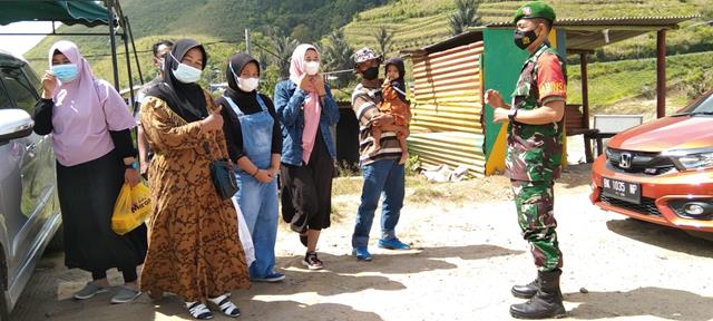Simalungun | Protokol Kesehatan Covid19 yang telah ditetapkan Pemerintah semenjak munculnya pandemi covid19, yang bertujuan untuk menjaga agar masyarakat terhindar dari wabah tersebut, namun sering kita temui adanya warga masyarakat yang kadang kala bahkan sering melupakan himbauan pemerintah tersebut, dalam hal ini sepert yang dilakukan oleh Personel Bintara Pembina Desa (Babinsa) Koramil 15/DP jajaran Kodim 0207/Simalungun Koptu Sumarlin turun kewilayah binaan untuk melaksanakan kegiatan PPKM Disiplin Protokol Kesehatan diwilayah binaan dalam rangka untuk menghimbau warga masyarakat jika keluar rumah agar mematuhi protokol kesehatan dengan cara mencuci tangan, jaga jarak dan memakai masker serta mengurangi mobilitas dalam rangka agar terhindar dari penyebaran virus Covid-19, kegiatan tersebut yang dilaksanakan bertempat di Nagori Togu Domu Nauli Kecamatan Dolok Pardamean Kabupaten Simalungun, Kamis (03/03/2022).
