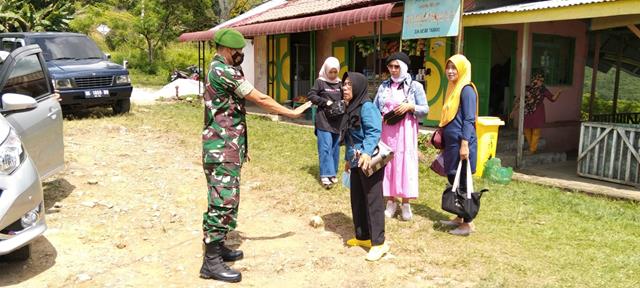 Babinsa Koramil 15/DP jajaran Kodim 0207/Simalungun terus melaksanakan giat penegakan protokol kesehatan agar selalu menggunakan masker dengan benar menjaga jarak dan sesering mungkin mencuci tangan guna mencegah penyebaran penularan virus Corona Covid-19.