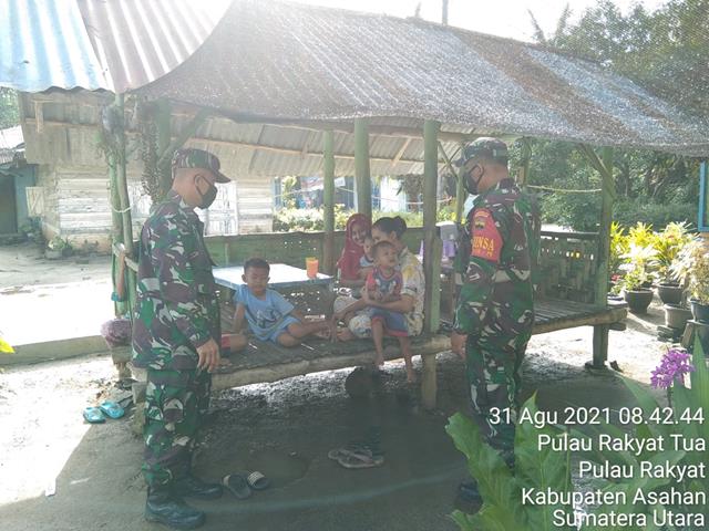 Asahan | Untuk mempererat hubungan silaturahmi dengan masyarakat Desa binaan, kehadiran Babinsa meningkatkan hubungan silaturahmi yang baik dan meningkatkan kepercayaan kepada masyarakat desa binaan. Seperti yang dilakukan oleh Persoenel Bintara Pembina Desa (Babinsa) Koramil 16/Pulau Rakayat jajaran Kodim 0208/Asahan Serda Monang Sitorus dan Kopda Bambang Hermanto turun kewilayah binaan untuk melaksanakan kegiatan Komunikasi Sosial (Komsos) bersmaa dengan masyarakat, dengan menghimbau untuk selalu mematuhi Prokes untuk meminimalisir Penyebaran Pandemi Covid-19 bersama dengan Bapak Kadus Bapak Irwanto dan Ibu Sarmini Sekeluarga, kegiatan tersebut yang dilaksanakan bertempat di Dusun 5 Desa Pulau Rakyat Tua Kecamatan Pulau Rakyat Kabupaten Asahan, Selasa (31/08/2021).