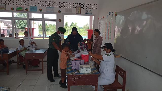 Dalam hal ini seperti yang dilakukan oleh Personel Bintara Pembina Desa (Babinsa) Koramil 09/Tiga Balata Kodim 0207/Simalungun Serda Ronald Silaban turut serta melaksanakan kegiatan pendampingan Vaksinasi (BIAN) Bulan Imunisasi Anak Nasional bersama Team Puskesmas Jorlang Hataran, kegiatan tersebut yang dilaksanakan bertempat di Sekolah Dasar Negeri 091482 Nagori Kasindir Kecamatan Jorlang Hataran Kabupaten Simalungun, Kamis (09/06/2022).