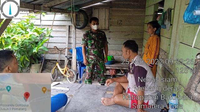Batu Bara | Dalam rangka agar terjalinnya hubungan yang baik antara Babinsa dengan masyarakat, untuk mempererat hubungan silaturahmi dengan masyarakat Desa binaan, kehadiran Babinsa meningkatkan hubungan silaturahmi yang baik dan meningkatkan kepercayaan kepada masyarakat desa binaan. Seperti yang dilakukan oleh Persoenel Bintara Pembina Desa (Babinsa) Koramil 01/Medang Deras jajaran Kodim 0208/Asahan Serda A. Seketang turun kewilayah binaan untuk melaksanakan kegiatan Komunikasi Sosial (Komsos) bersama dengan masyarakat dalam rangka agar semakin dekat dan mengingat kan warga agar tetap memakai masker apabila keluar Rumah, dengan menghimbau untuk selalu mematuhi Prokes untuk meminimalisir Penyebaran Pandemi Covid-19, bersama dengan Bapak Sulaiman, Bapak Rudianto dan Ibu Sulastri, kegiatan tersebut yang dilaksanakan bertempat di Desa Nanasiam Kecamatan Medang Deras Kabupaten Batu Bara, Jumat (25/03/2022).