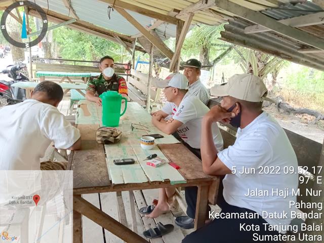 Tanjung Balai | Dalam rangka untuk menjaga pola makan yang teratur dan istrahat yang cukup agar tidak mudah terkena penyakit batuk2, dalam hal ini seperti yang dilakukan oleh Personel Bintara Pembina Desa (Babinsa) Koramil 17/Datuk Bandar jajaran Kodim 0208/Asahan Kopda Wirton H Tamba turun kewilayah binaan untuk melaksanakan kegiatan Komsos membahas tentang dampak cuaca buruk yang menimbulkan banyak penyakit seperti batuk2 dan demam terutama terhadap anak anak yang rentan terkena penyakit, bersama dengan Bapak Holong gultom, Bapak Hendra, Bapak Sugeng dan Bapak Jul, kegiatan tersebut yang dilaksanakan bertempat di Jalan Hj.M. Nur Kelurahan Pahang Kecamatan Datuk Bandar Kota Tanjung Balai, Minggu (05/06/2022).