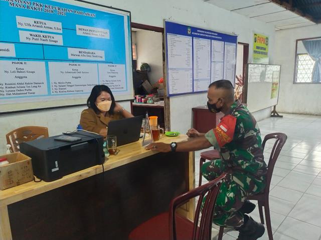 Pematang Siantar  |  Guna mengetahui perkembangan di Wilayah Binaan, Puldata Ter yang dilakukan ini merupakan tugas dan tanggung jawab seorang Babinsa, guna mengetahui kondisi dan perkembangan wilayah binaan melalui data Geo, Demo, Konsos, dalam hal ini seperti halnya yang dilakukan oleh Personel Bintara Pembina Desa (Babinsa) Koramil 02/Siantar Timur jajaran Kodim 0207/Simalungun Serka Supriadin turun kewilayah binaan untuk melaksanakan kegiatan Pul Data Ter di Kantor Lurah Pahlawan bersama Ibu Rosma br Purba dalam rangka untuk memperbaharui data Geo, Demo, Konsos di wilayah biaanya, kegiatan tersebut yang dilaksanakan bertempat di Kantor Lurah Pahlawan Jalan Patimurah Kelurahan Pahlawan Kecamatan Siantar Timur Kota Pematang Siantar, Kamis (10/02/2022).