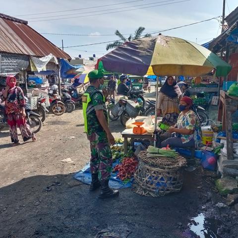 Pengecekan dan himbauan di tempat keramaian dan fasilitas umum untuk pencegahan wabah virus Covid 19, di Pos Pasar Baru Kelurahan Perdagangan III Kecamatan Bandar. Babinsa melaksanakan himbauan kepada masyarakat, terlebih khususnya kepada para pedagang dan pembeli di pasar tradisional, dalam rangka melaksanakan penerapan disiplin dalam mematuhi protokol kesehatan. Himbauan yang disampaikan Babinsa Serka Paisal ini, masih adanya para pembeli dan pedagang yang tidak menggunakan masker, dan mereka menganggap biasa kalau tidak mengunakan masker. “Babinsa selalu mengingatkan bahwa kita harus terus tetap tingkatkan kewaspadan yang terlebih khususnya masyarakat di wilayah Koramil 06/Perdagangan dengan cara yang dilaksanakan dengan humanis dan tetap tegas agar warga mau mendisiplinkan dirinya sendiri dan keluarganya,” ucap Babinsa Serka Paisal.