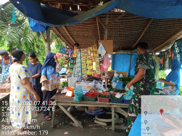 Asahan  |  Guna untuk memutus mata rantai penyebaran Virus Covid 19 dalam rangka agar para pedagang dan pembeli didiplin dalam menerapkan protokol kesehatan untuk mencegah penularan Virus Corona atau Covid-19, dalam hal ini Personil Bintara Pembina Desa (Babinsa) Koramil 16/Pulau Rakyat jajaran Kodim 0208/Asahan Sertu Mahdian dan 1 orang anggota Babinsa turut serta melaksanakan kegiatan Komunikasi Sosial (Komsos) diwilayah binaan kepada pedagang dan himbauan agar selalu mematuhi Prokes kepada Masyarakat dengan memberikan arahan dan himbauan kepada pedagang dan pembeli agar selalu mentaati Protokoler Kesehatan dengan memakai masker, mencuci tangan sebelum dan sesudah beraktivitas untuk menghindari penularan/penyebaran virus Covid-19 bersama dengan Ibu Asnah, Bapak Suyatno dan Ibuk Ita, kegiatan tersebut yang dilaksanakan bertempat di Dusun 1 Desa Pulau Rakyat Tua Kecamatan Pulau Rakyat Kabupaten Asahan, Minggu (15/05/2022).