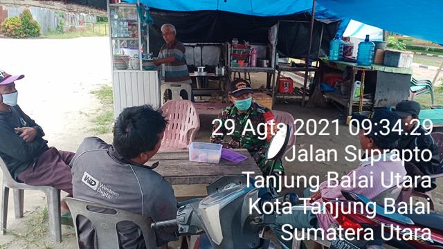 Tanjung Balai  |  Guna mendukung Tugas Pokok sebagai seorang Babinsa serta terwujudnya Kemanunggalan TNI dengan Rakyat, Personel Bintara Pembina Desa Personel Koramil 09/Tanjung Balai jajaran Kodim 0208/Asahan, Sertu Afrizal Adhitama melaksanakan giat Komsos bersama dengan Kepling dan masyarakat. Giat tersebut bertempat di Jalan Suprapto, Kelurahan Tanjung Balai Kota IV, Kecamatan Tanjung Balai Utara, Kota Tanjung Balai, Minggu (29/08/2021).