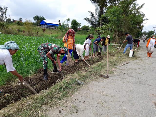 Pada kesempatan tersebut Babinsa bersama warga masyarakat melaksanakan kegiatan kerja bakti sosial membersihkan jalan dan parit serta membersihkan halaman rumah di Desa wilayah binaan, Babinsa Sertu Mahdan mengungkapkan kegiatan kerja bakti ini dilakukan karena kondisi parit dan bahu jalan yang ada di Desa binaan semakin menyempit karena ditumbuhi rumput dan semak yang menjalar ke bahu jalan sehingga sangat kotor, jelasnya.