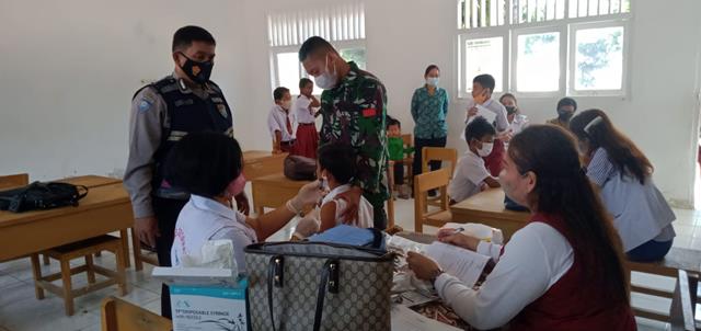 Personel Jajaran Kodim 0207/Simalungun Dampingi Pelaksanaan Imunisasi Anak Nasional