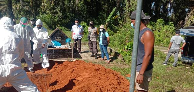 Adapun Identitas dan Riwayat Penyakit Pasien, Nama Bonaria Sianturi, Jenis Kelamin Perempuan, Umur : 52 Tahun. Yang beralamat di Huta Korem Luar Nagori Mekar Bahalat Kecamatan Jawa Maraja Bah Jambi Kabupaten Simalungun. Pada hari Kamis tgl 24 Februari 2022 Pasien masuk RSU Murni Teguh Medan dengan penyakit kelenjar dan Asma setelah Pasien tiba di RSU murni teguh Medan, Pasien melakukan Swab antigen dan hasil positif. untuk pemakaman jenazah tiba ditempat Pemakaman Umum di Huta Panombean Nagori Tanjung Maraja Kec.Jawa Maraja Bah Jambi Kab.Simalungun dengan kondisi jenazah telah di bungkus dengan plastik di dalam peti jenazah dengan keadaan tertutup di antar oleh ambulance RSU murni teguh Medan, di dampingi Keluarga.